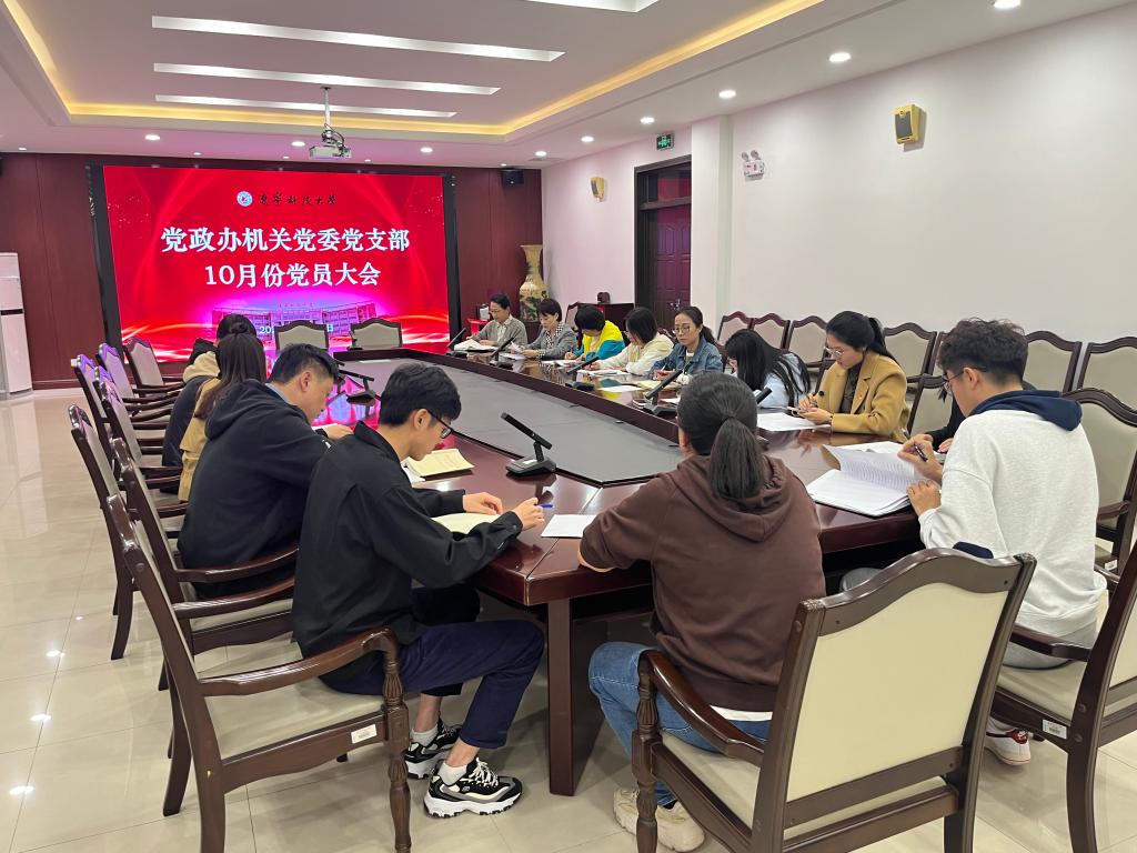 10月13日上午,党政办机关党委党支部在机关楼120会议室召开党员大会,开展集体学习和读看思研活动。