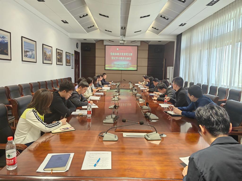 会议集中部署了《党政办机关党委党支部党纪学习教育工作安排》,明确了支部党纪学习教育的主题是以八学模式开展个一活动“以上率下带头学,讲好一堂主题党课”“交流研讨共同学,召开一场学习研讨”“循迹悟源现场学,开展一次主题党日”“承诺践诺体验学,组织一次政治生日”“观看视频深悟学,分享一系列专题片”“个人自主加压学,撰写一篇主题征文”“原汁原味背诵学,开展一次知识竞赛”“紧跟实际常态学,推动一次全覆盖学习”。会上,编制下发了《党政办机关党委党支部党纪学习教育学习材料汇编将上级相关会议和文件精神、《中国共产党纪律处分条例》系列解读、警示教育案例等材料编制成册,作为党员自主学习的辅导读物。