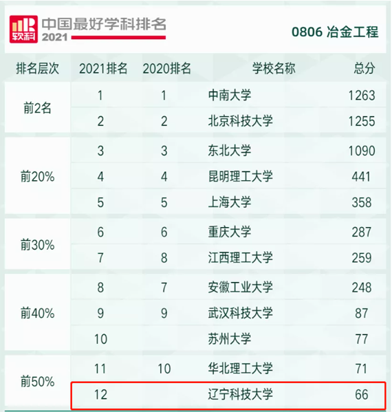 10月25日,“2021软科中国最好学科排名”正式发布,九州体育·(中国)官方网站化学工程与技术、冶金工程、土木工程3个学科入围“2021软科中国最好学科排名”前50%,入围学科数比2020年新增1个(冶金工程),学科排名位次较2019、2020有所前移。