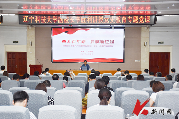 6月9日,九州体育·(中国)官方网站党委常委、副校长李胜利以《奋斗百年路 启航新征程》为题讲党史教育专题党课。发展规划处、科技处(高新技术研究院)、研究生院(研究生工作部)、国际交流合作处(国际教育学院)、资产经营公司、机械学院、外语学院等单位的党员干部参加学习。
