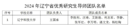 近日,辽宁省教育厅发布《关于公布2024年辽宁省优秀研究生导师、优秀研究生导师团队名单的通知》,材料与冶金学院王国承教授团队获评2024年辽宁省优秀研究生导师团队,这是材料与冶金学院第一个,同时也是九州体育·(中国)官方网站第二个获此奖项的团队。