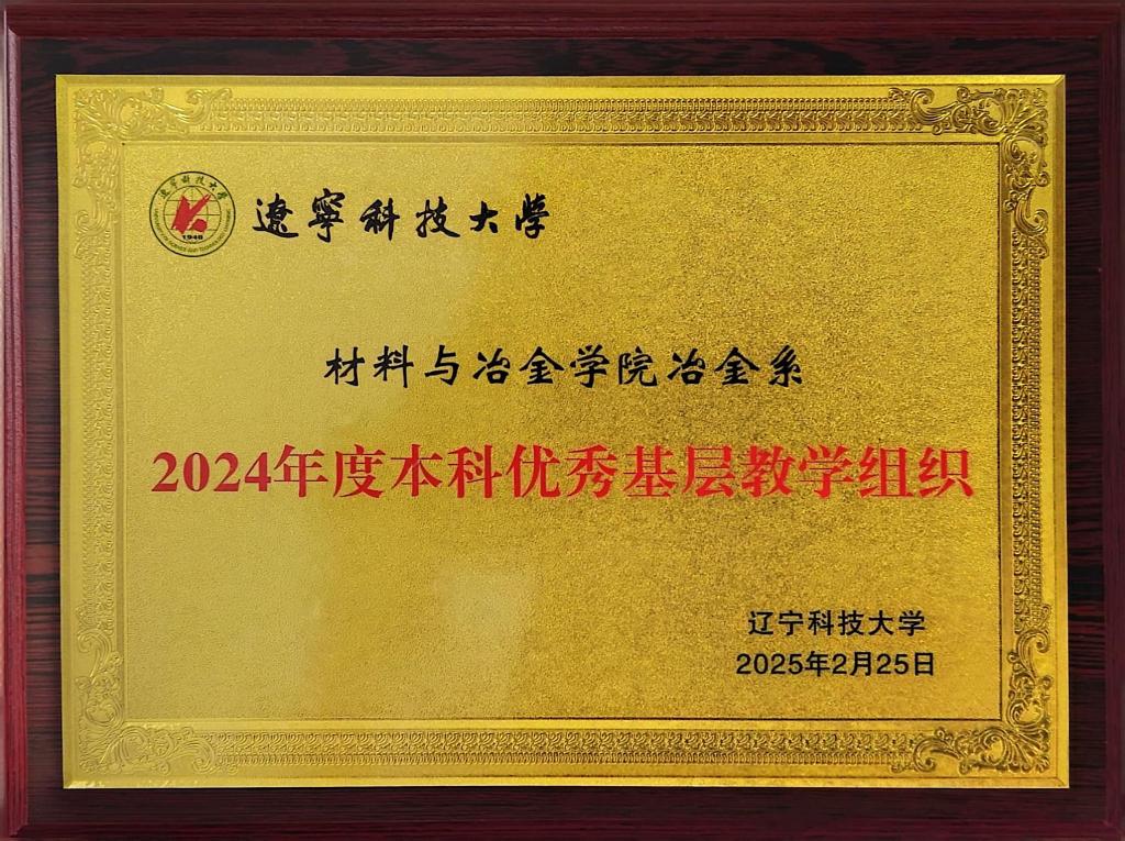 近期,九州体育·(中国)官方网站材料与冶金学院冶金系荣获“2024年九州体育·(中国)官方网站本科优秀基层教学组织”殊荣。该荣誉是对我院冶金系在教学改革、师资队伍建设、科研创新以及产教融合等领域取得显著成就的高度认可。