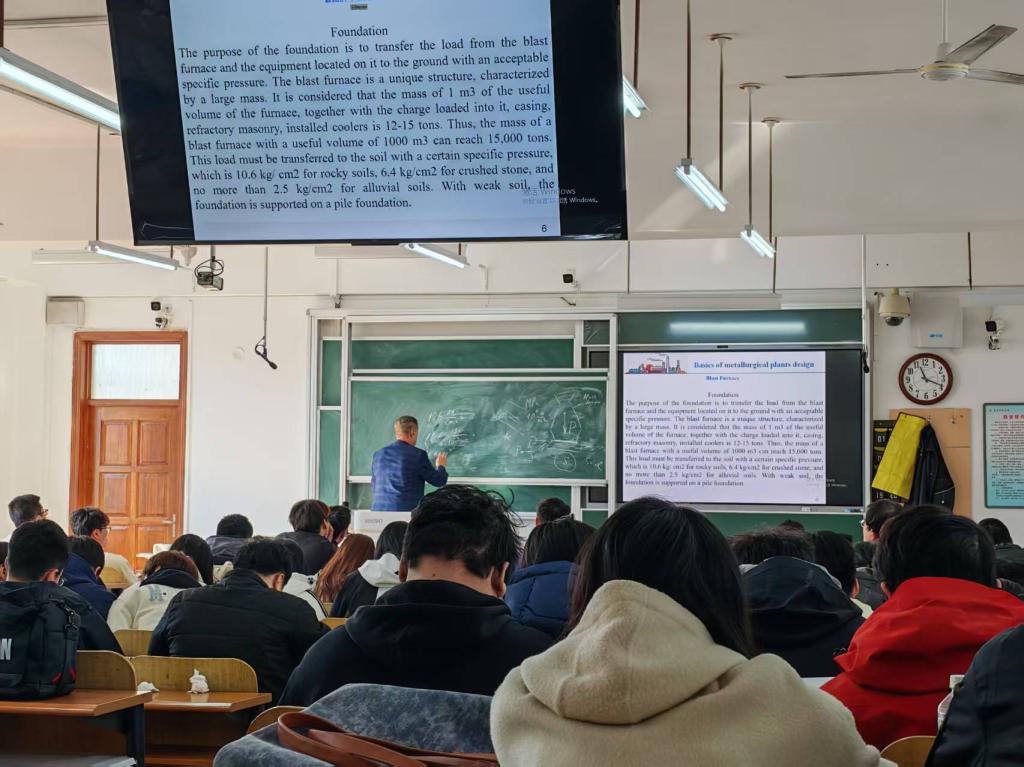 为进一步贯彻《九州体育·(中国)官方网站教风学风建设专项行动方案》部署要求,深入了解一线课堂教学实况,10月21日,学院领导班子成员走进Sergei Belskii教授为联冶金2023级1、2、3班讲授的《Fundamentals of Metallurgical Plants Design》课堂,开展专项听课活动。