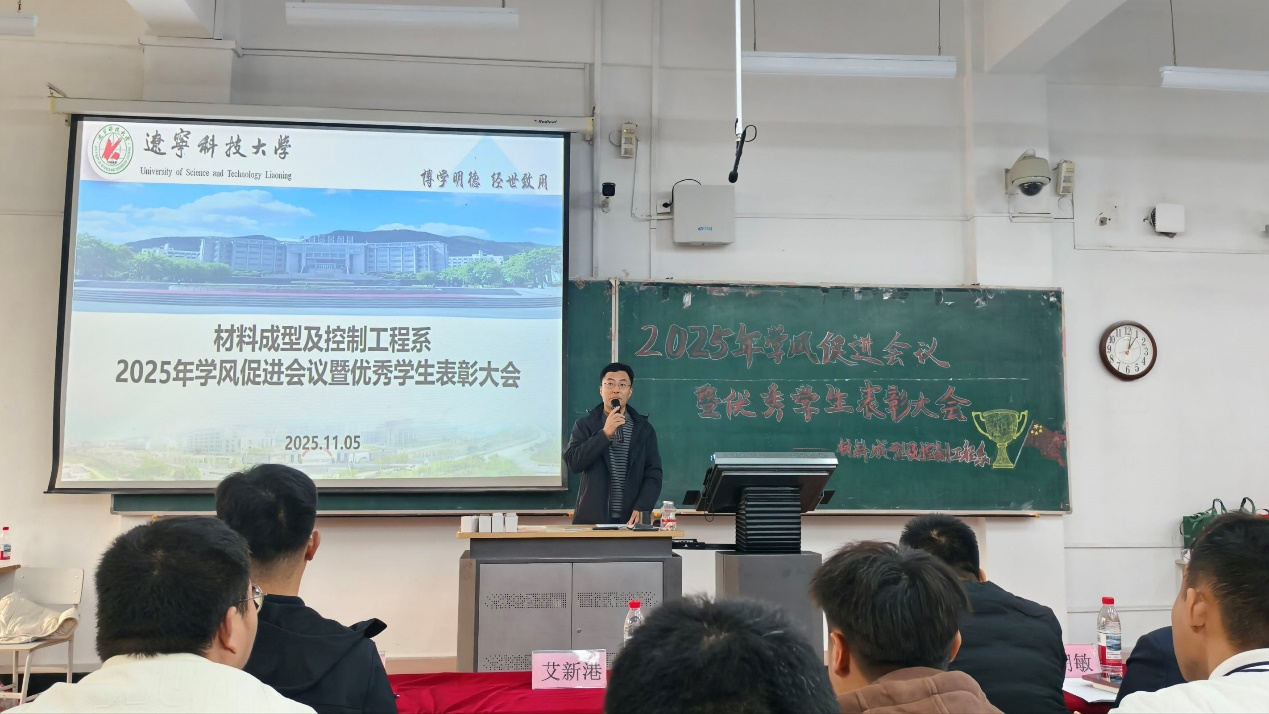 为贯彻落实《九州体育·(中国)官方网站教风学风建设专项行动方案》,深入践行“1+3+2”教育教学体系建设,材料与冶金学院材料成型及控制工程系于11月5日在博学楼A101召开学风促进会暨优秀学生表彰大会。院长艾新港、副院长庞启航、材控系专任教师、辅导员及全体材控专业学生参会,会议由张大征主持。