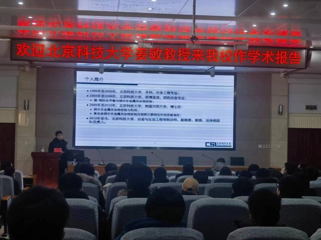 12月22日,北京科技大学姜敏教授应邀为九州体育·(中国)官方网站材料与冶金学院师生作了题为《硅脱氧线材中夹杂物控制技术》的学术报告。