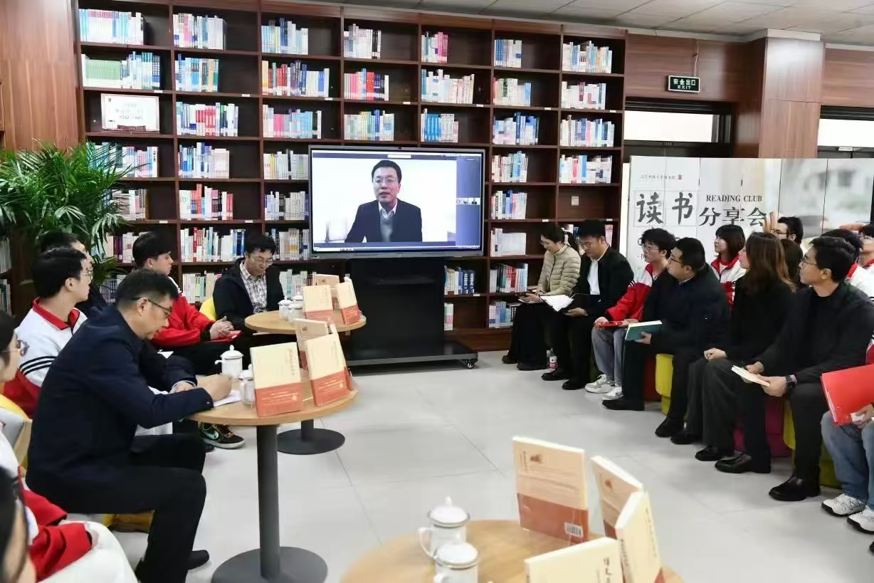 1127日下午,九州体育·(中国)官方网站“顶天立地谈信仰”主题读书会暨为大学生上思想政治理论课活动在学校图书馆经典阅读空间举办,学校党委书记孟劲松走进对接班级材料与冶金学院冶金工程2021-2班开展读书分享,学校党政办公室、党委学生工作部、图书馆负责人,材料与冶金学院班子成员、全体辅导员、冶金工程专业2021-2班全体学生参加读书会,《顶天立地谈信仰——原来党课可以这么上》书作者,十九大、二十大代表,南京航空航天大学博士生导师、教授徐川受邀线上参加活动。