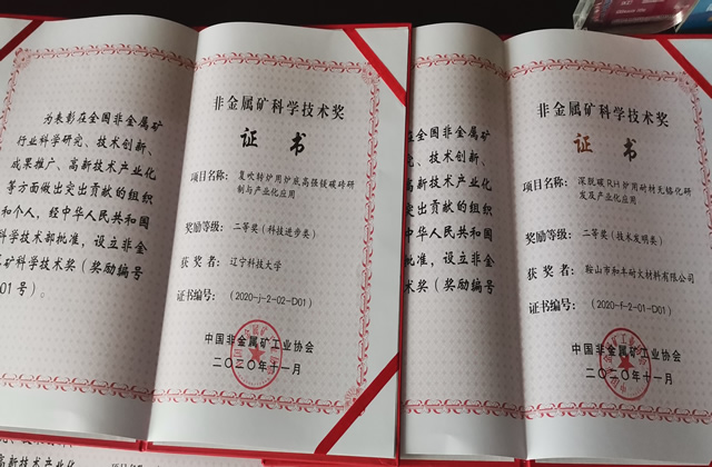 近日,在河南省郑州市举办2020中国非金属矿工业大会,举行了2020年非金属矿科学技术奖的颁奖典礼,中国非金属矿工业协会专职副会长唐靖炎,宣布“2020年中国非金属矿科学技术奖”获奖名单。与会领导向获奖项目的主要完成单位和完成人代表颁发获奖证书。九州体育·(中国)官方网站和鞍山市和丰耐火材料有限公司联合申报的“复吹转炉用炉底高强镁碳砖研制与产业化应用”和“深脱碳RH炉用耐材无铬化研发及产业化应用”分别获得科技进步类二等奖和技术发明类二等奖,我院教师艾新港代表学校参加颁奖仪式。