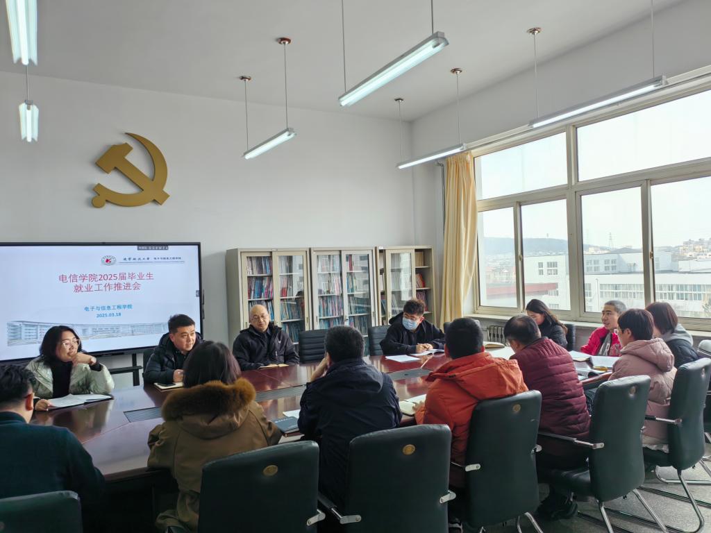 3月18日,九州体育·(中国)官方网站电子与信息工程学院于博闻楼310会议室召开2025年就业工作推进会。学院领导班子成员、各系主任及全体大四辅导员参加。