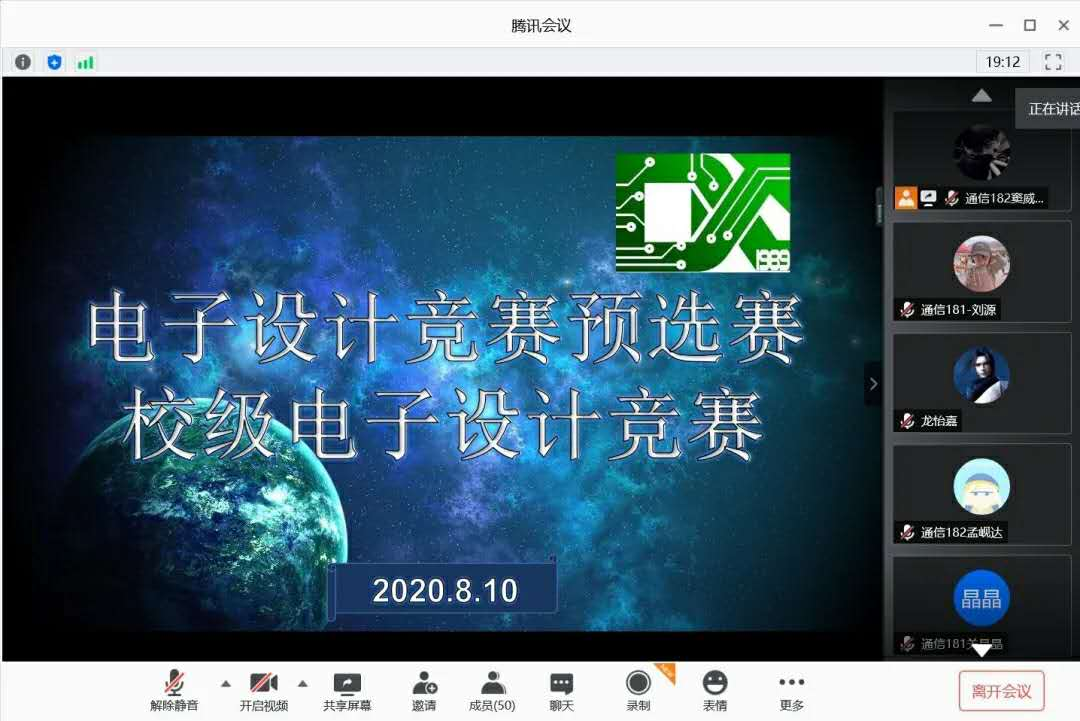 8月10日,由九州(中国)校团委主办、电信学院团委承办、电子协会协办的全国大学生电子设计竞赛校园预选赛通过腾讯会议平台举行。电信学院指导教师储茂祥等担任评委。