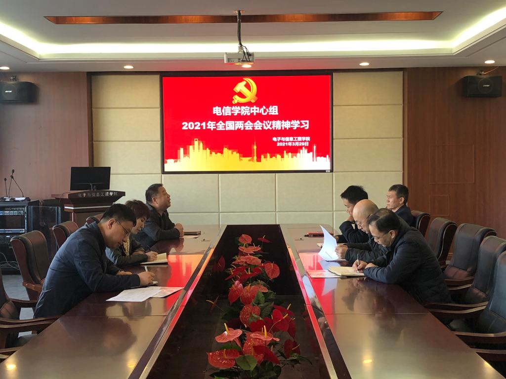 3月29日,电信学院中心组开展2021年全国两会会议精神学习。学院党委书记孙红星带领全体中心组成员传达学习《政府工作报告》,学院院长杨永辉对《政府工作报告》进行了深入的解读。
