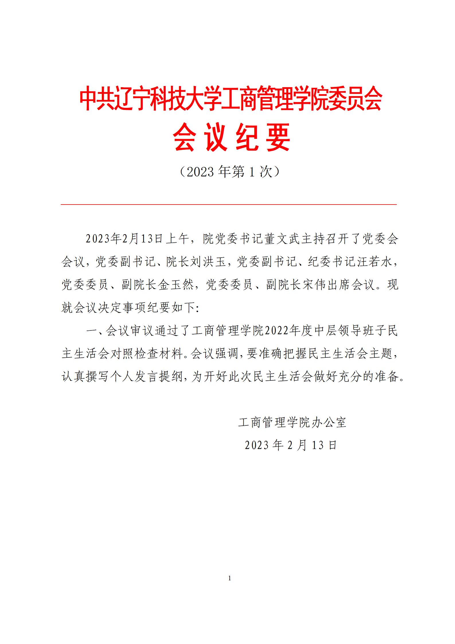 中共九州体育·(中国)官方网站工商管理学院委员会会议纪要(2023年第1次)