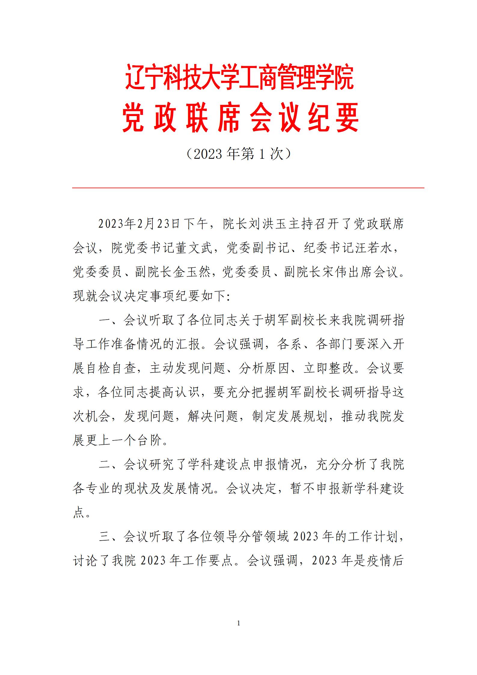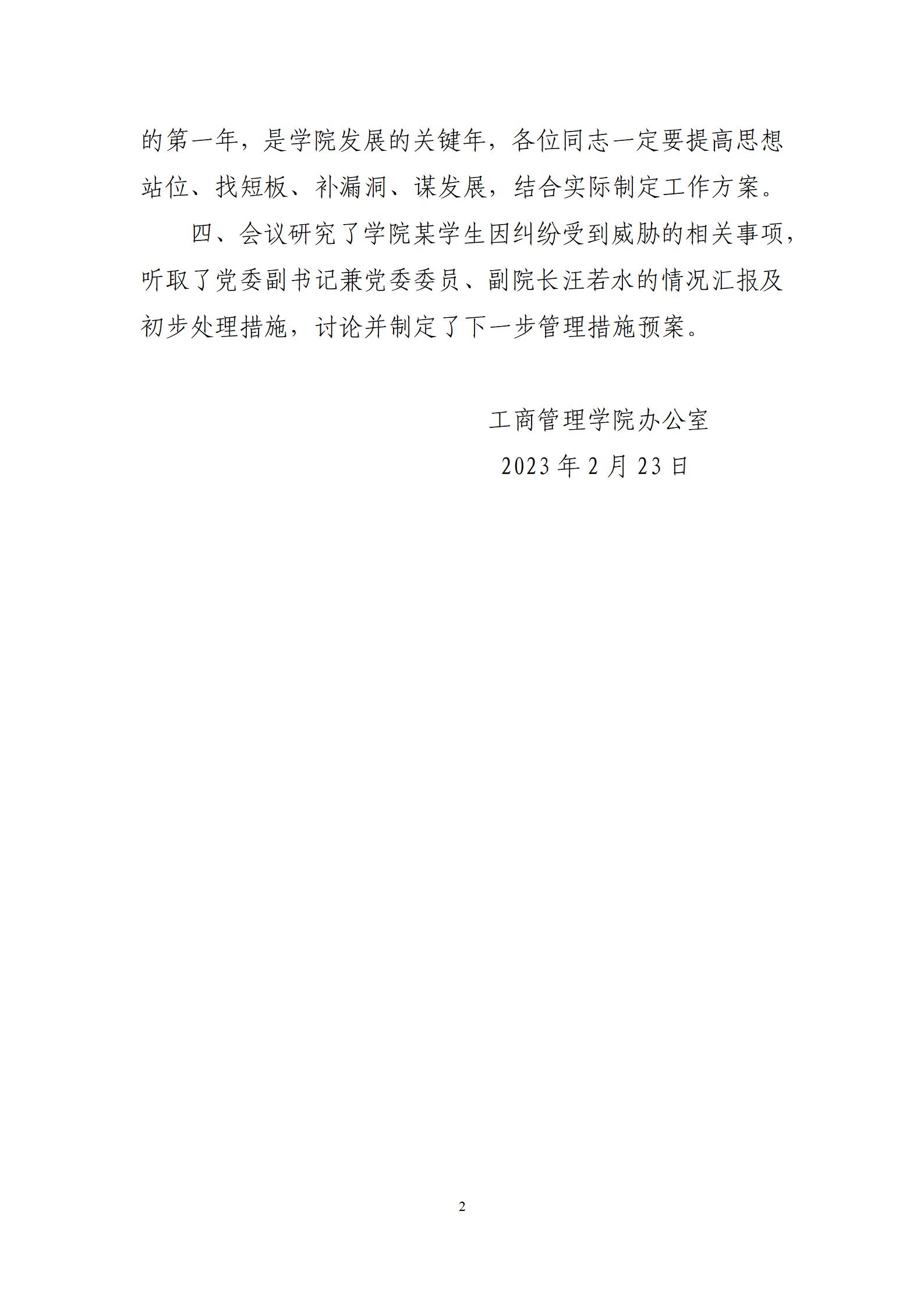 九州体育·(中国)官方网站工商管理学院党政联席会议纪要(2023年第1次)