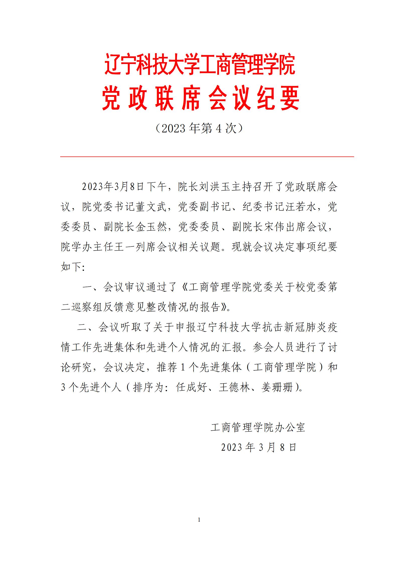 九州体育·(中国)官方网站工商管理学院党政联席会议纪要(2023年第4次)