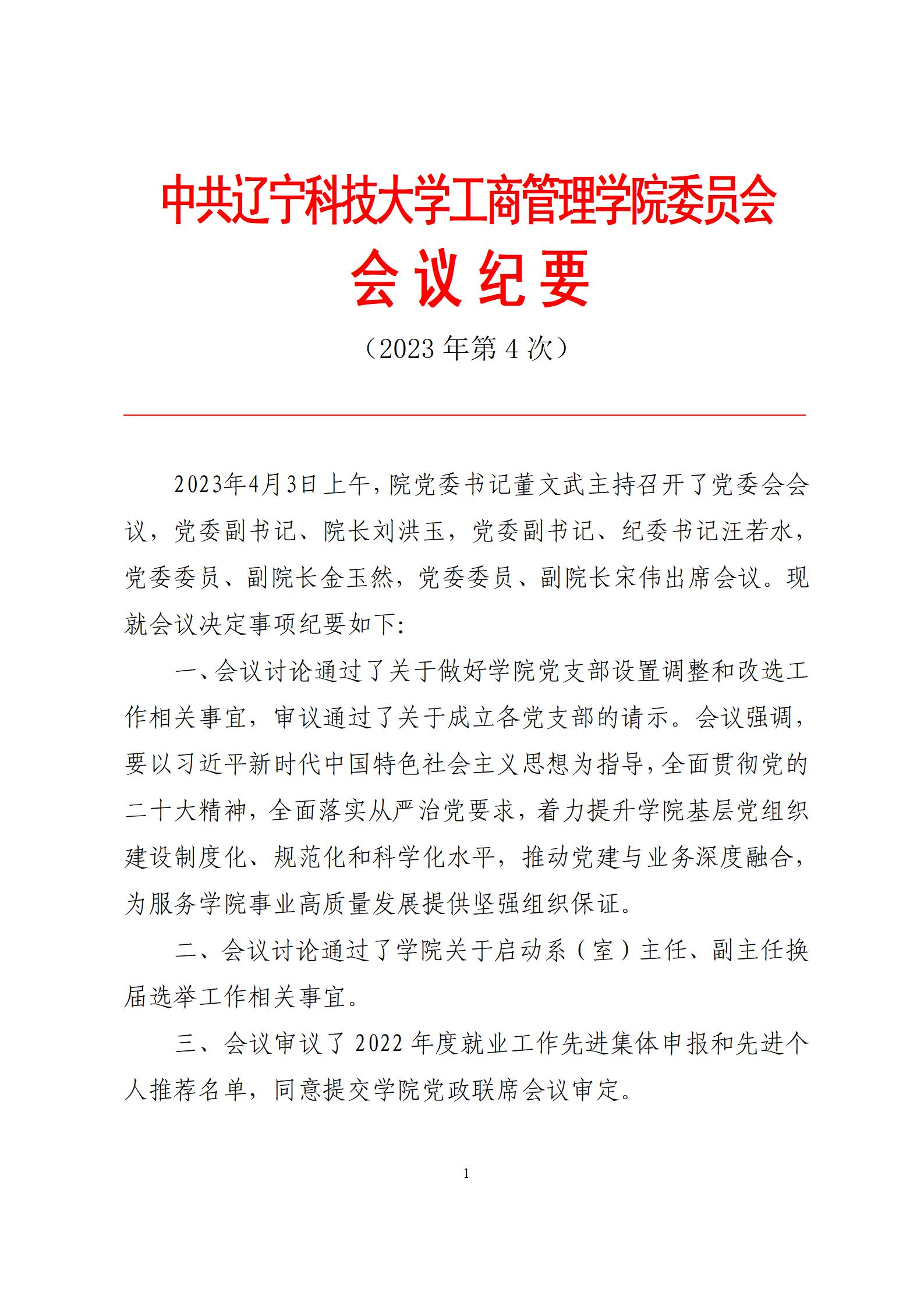 中共九州体育·(中国)官方网站工商管理学院委员会会议纪要(2023年第4次)