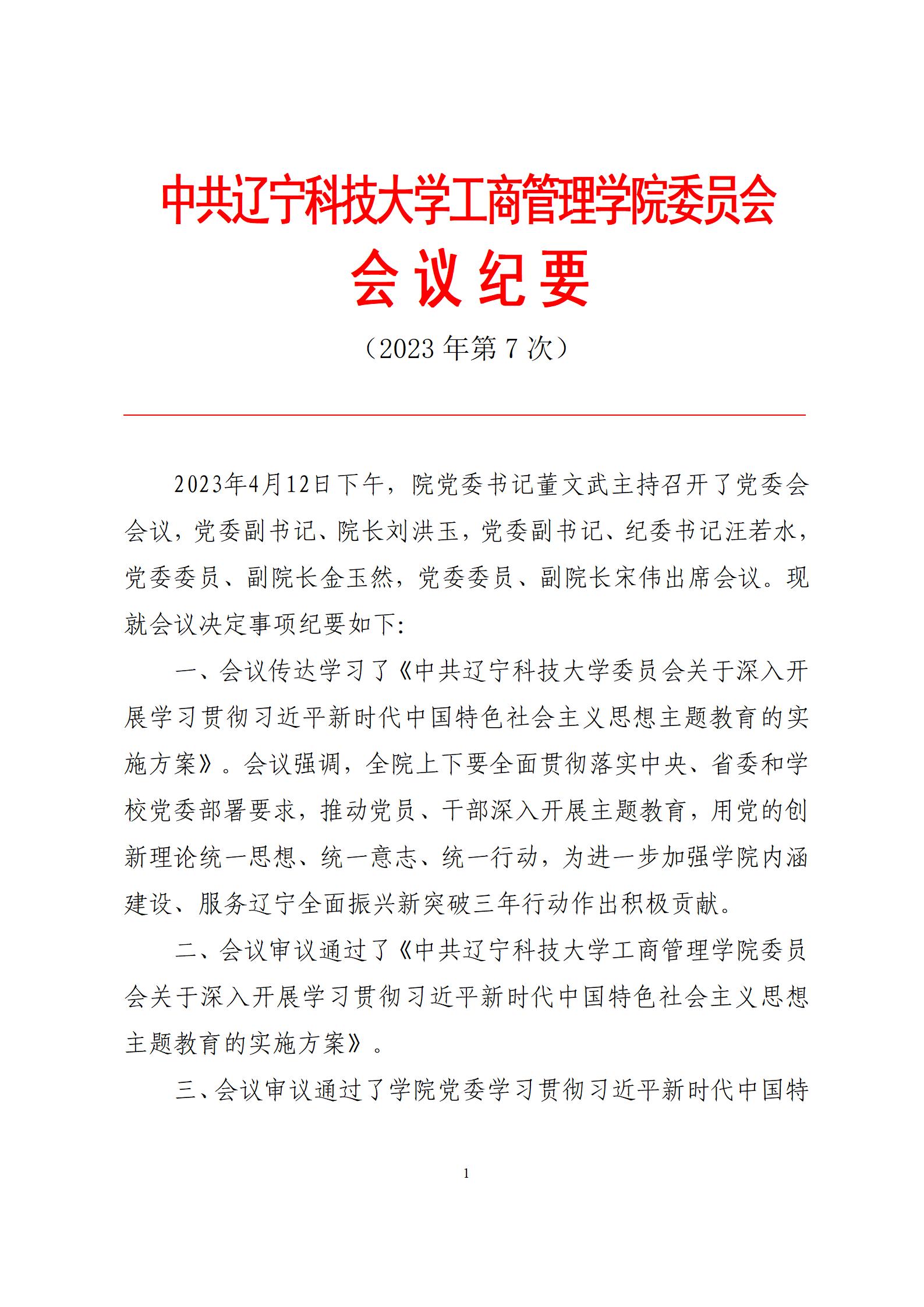 中共九州体育·(中国)官方网站工商管理学院委员会会议纪要(2023年第7次)