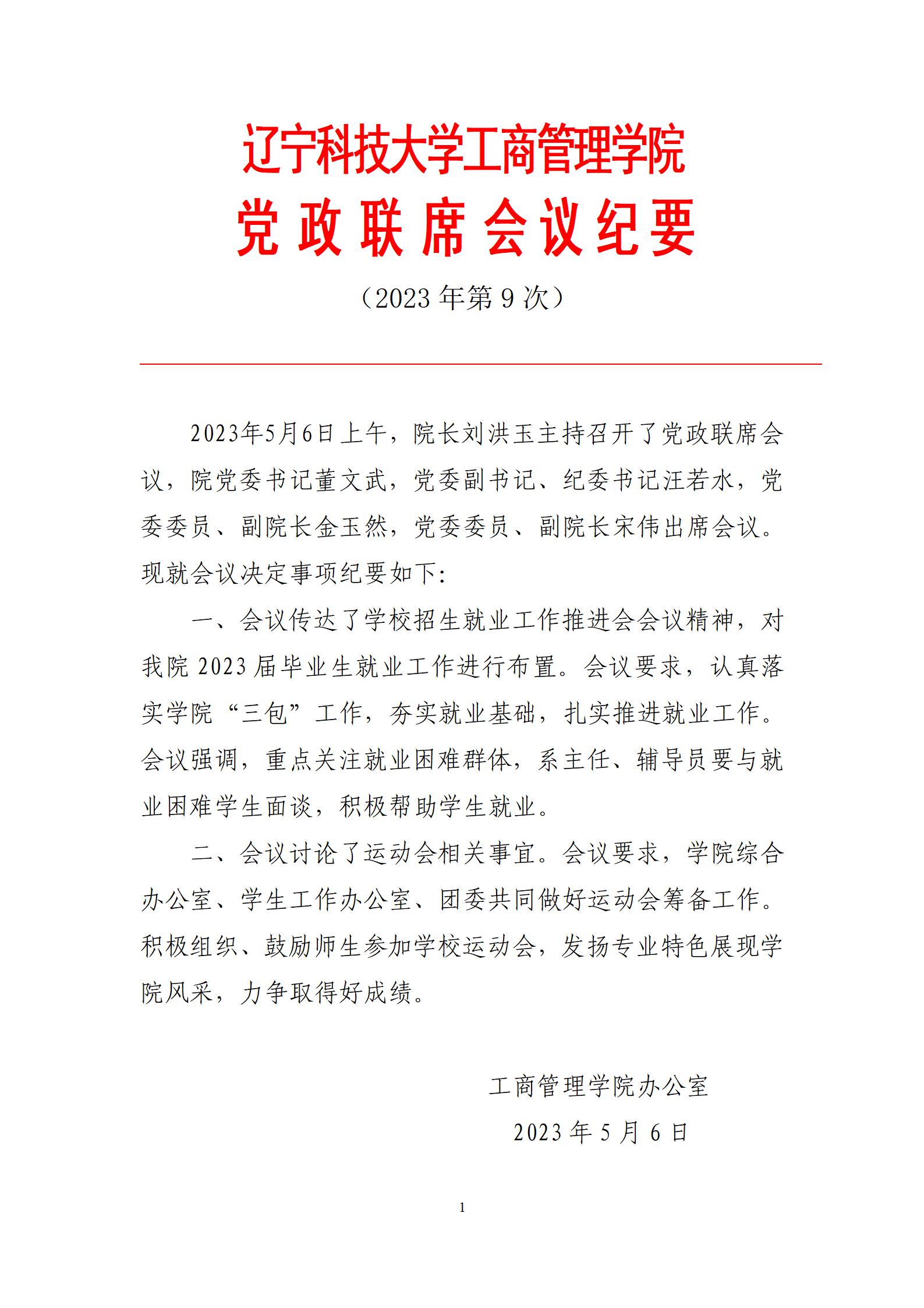 九州体育·(中国)官方网站工商管理学院党政联席会议纪要(2023年第9次)