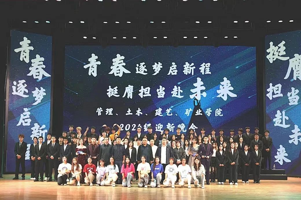 9月14日,管理、土木、建艺、矿业学院于校礼堂共同举办了一场主题为“青春逐梦启新程 挺膺担当赴未来”的迎新晚会。本次晚会旨在欢迎2024级新同学,展现学院风采,让学院新生更好的适应学校新生活。在这个特别的夜晚,四院领导班子、教师代表、四院2024级全体学生出席此次活动,师生共同观看了此次晚会。晚会现场气氛热烈,灯光璀璨。