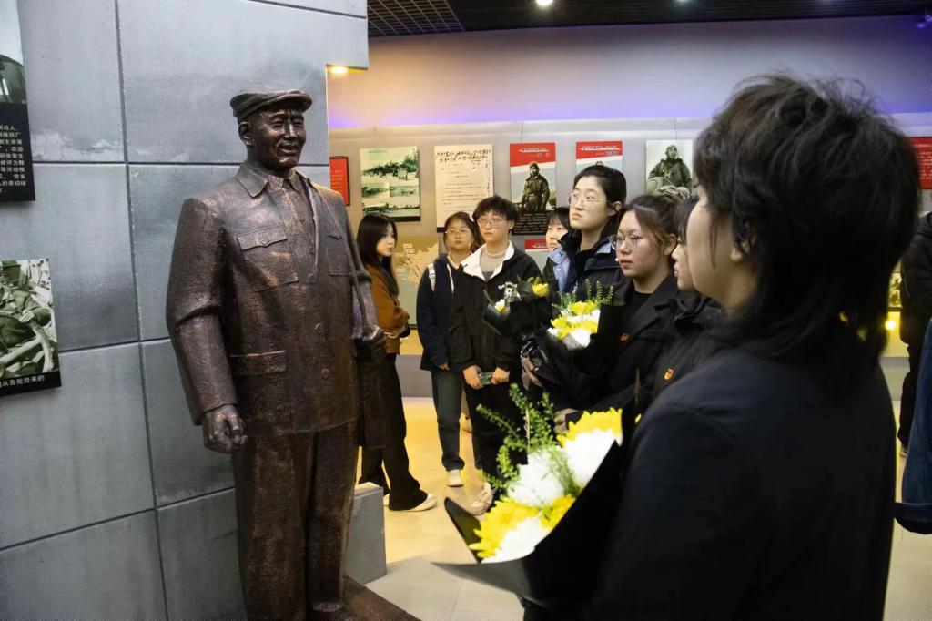 首先是参观革命英烈纪念馆,讲解员生动讲述了先辈们英勇顽强的战斗历程,他们用生命书写忠诚,用鲜血捍卫信仰的英雄事迹,让大家都深深感受到了中华儿女不屈不挠、前赴后继的革命精神。在巍峨高耸的革命烈士纪念碑下,全体师生怀着对革命先辈的崇高敬意和无限哀思,庄重地唱着国歌,并列队鞠躬默哀,接受这一场“沉浸”式精神洗礼。