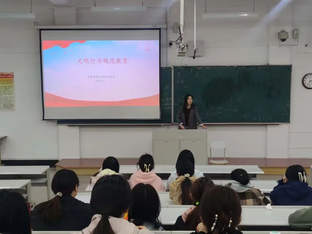 “文明行为规范” 主题班会持续推进 “好习惯工程” 系列活动。学院加强对学生日常行为规范的教育,引导学生杜绝在教学楼、图书馆等建筑物内吸烟,引导学生树立正确的恋爱观,做到举止文明。在课堂纪律方面,要求学生严格遵守,不迟到、不早退,不在上课期间玩手机或接打电话,不做与课堂无关的事,不能将早餐带进教学楼。通过这些举措,学院营造了良好的学习和生活氛围,促进学生养成良好的行为习惯。