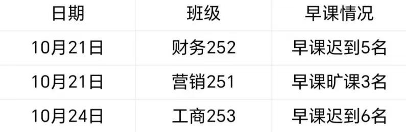 希望全体同学以优秀为榜样,在早课上保持积极的学习状态,在寝室中营造整洁温馨的生活空间,在晚自习时坚守专注学习的准则。早课是知识积累的黄金时段,寝室是身心休憩的温暖港湾,晚自习是自我提升的关键阵地,让我们共同珍惜这些时光与空间,为打造优良的学院风貌而不懈努力,推动学院的学风建设再创新佳绩。