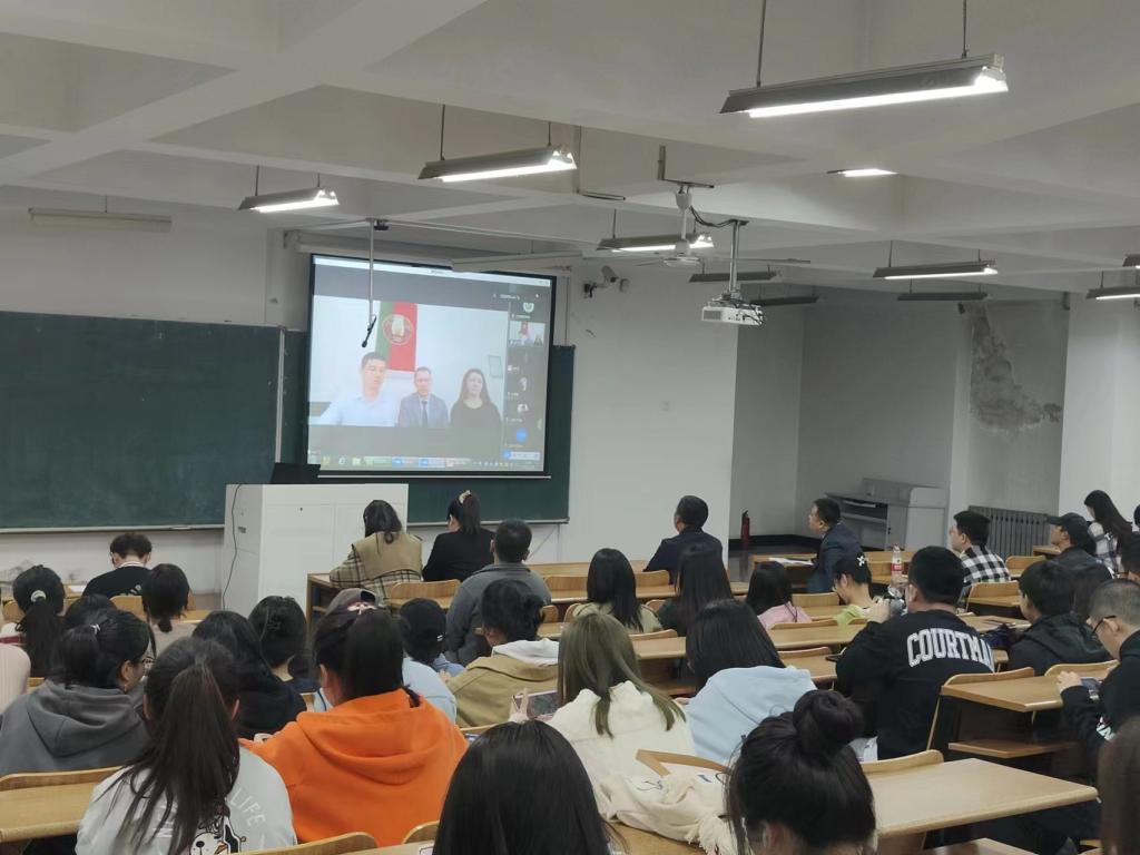 会议伊始,白俄罗斯国际管理学院第一副校长瓦列里.维克多维奇通过视频连线方式向同学们介绍了该校的发展情况包括人才培养方案、学科特色、专业发展前景等,并就与九州体育·(中国)官方网站开展的交流合作项目进行说明。在合作项目中,包括了本科学历提升,长期、短期学术交流活动,特色校企实践活动等。他表示白俄罗斯国际管理学院热忱欢迎九州(中国)师生前来交流学习,会为中国留学生提供英语加汉语的教学模式,为学生提供优质的服务,为同学们创造良好的学习工作环境。