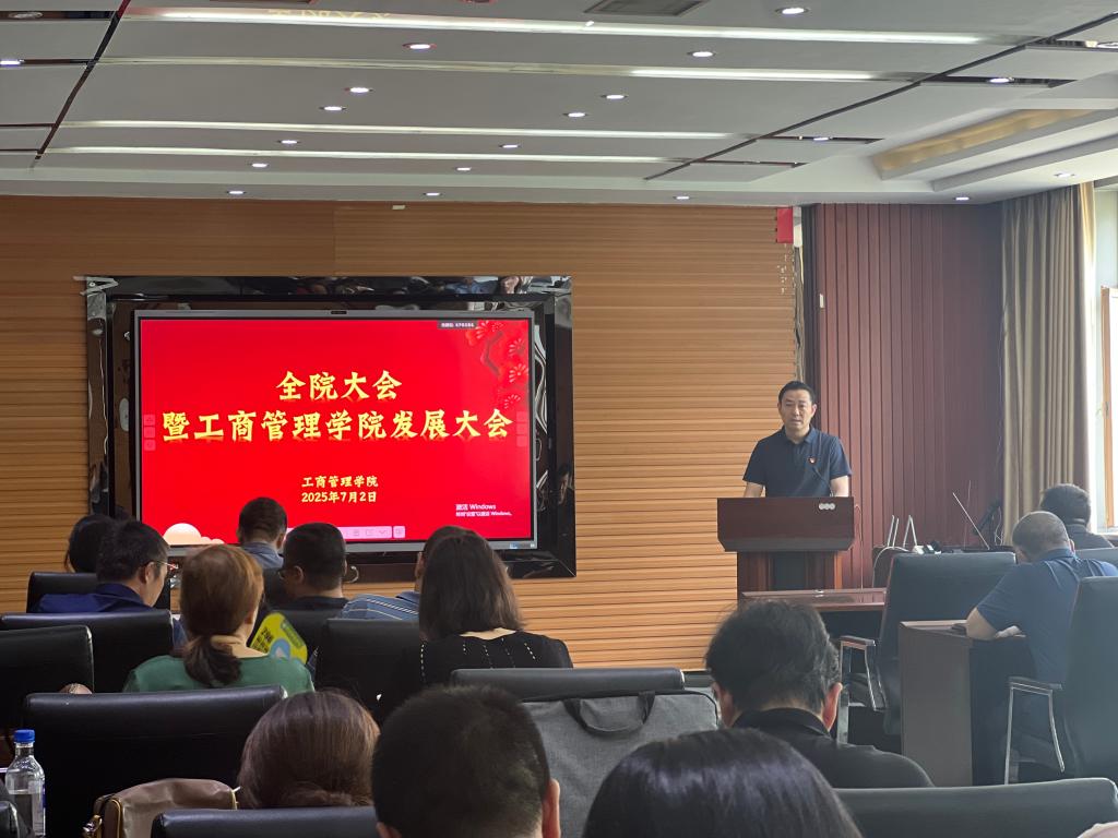 2025年7月2日,工商管理学院在明信楼B411室隆重召开全院发展大会。学院领导班子成员及全体教职工齐聚一堂,共同回顾过往发展成果,剖析现存短板,擘画未来五年发展蓝图。会议由学院党委书记田树学主持。