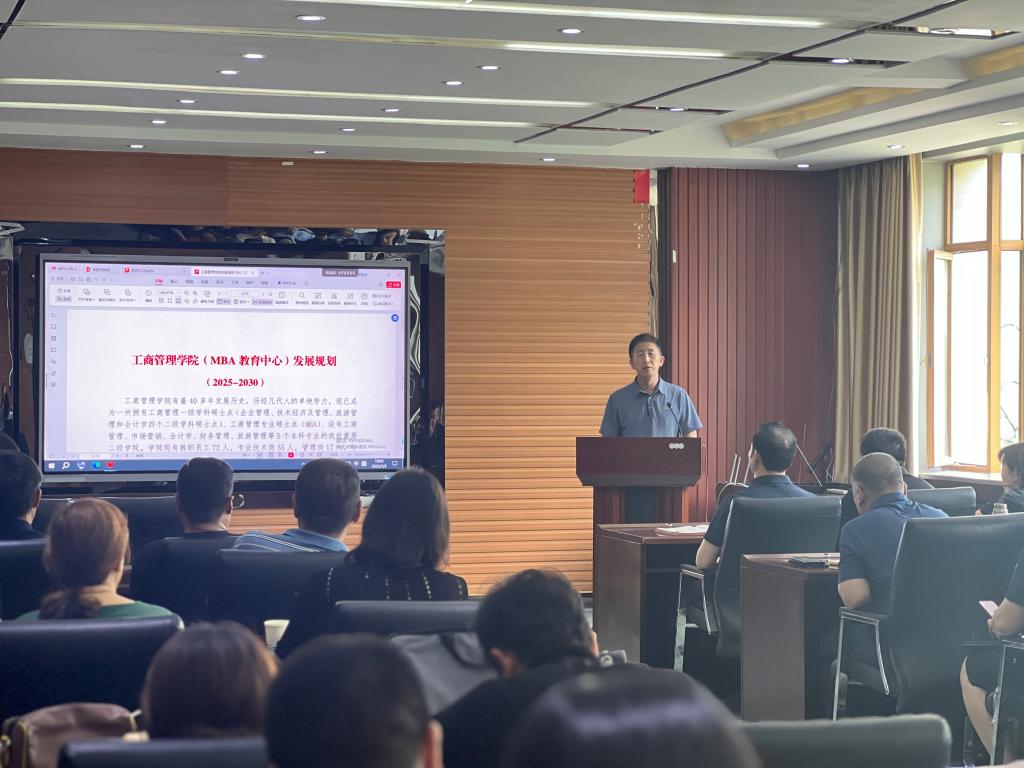 学院院长金玉然作《工商管理学院(MBA教育中心)发展规划(2025-2030)》报告,从八个方面对学院未来发展进行了规划。在发展目标方面,工商管理学院将深化“内涵式”发展,大胆创新,经过五年时间,力争成为人才培养特色鲜明、学科建设进步、教师幸福感提升、具有更广泛社会影响力的省内一流商科学院;在党建引领层面,学院将持续强化党组织在学院各项工作中的领导核心作用;在本科人才培养层面,将全面深入贯彻“1+3+2”教育教学体系改革,通过高质量修订《2025版专业人才培养方案》,打造以人工智能、绿色低碳、国际化为核心的新文科专业特色,此轮修订中,学院各专业已经开设《人工智能营销》《市场调查与商业智能》《智能广告》《人工智能与商业分析》《营销大数据量化分析与AI大模型应用》《智能财务管理》《碳会计与碳审计》《碳商学》《企业碳管理》《ESG理论与实践》《International Financial Reporting and Analysis》《Business and Technology》《数智人力资源管理》《数智物流管理》《智慧供应链管理》《数智化工作分析》《智能招聘》《数智化薪酬管理》《数据驱动的管理方法与应用》等近30门新课,平均每个专业8门新课。学院将启动面向AI+绿色低碳的100+教育教学改革计划、100+校外导师专家库计划、10+优质实习实训就业基地计划、10+高质量特色教材计划、1+产业学院计划、特色“微专业”计划、40+校企共建课计划、本科毕业论文质量提升计划、本科生国际交流计划;在学科建设与研究生培养方面,学院将大幅度优化学术研究生和MBA研究生人才培养方案,增设“数智会计与财务管理”“智慧物流与供应链管理”方向,增设《通用人工智能基础》《大数据与商务智能》《基于人工智能的科研论文写作》《智能营销》《ESG 与企业社会责任》《数字化转型与AI战略》等特色课程,修订并提升全日制硕士研究生毕业学术成果要求,加速推进MBA案例建设,通过“双盲外审”“双盲答辩”“对需要重大修改论文引入盲审后评价”等措施提升MBA毕业论文质量;在科学研究与师资队伍建设方面,学院将加强学科团队建设,推动有组织科研,加强导学团队建设,积极培育国家级科研项目,启动10+专著计划,打造九州(中国)工商管理学院品牌国际/国内会议、打造“辽科智汇·匠心致远”企业管理大讲堂IP、全方位助力青年教师成长;在文化建设方面,学院将践行“无须扬鞭自奋蹄”“被需要是幸福的”等文化;在制度建设方面,将以“缺什么,就补什么强什么”为导向优化绩效激励指标,丰富荣誉体系,设立“钢都星火青年学者奖”“MBA教学名师奖”“金点子奖”等奖项;在就业、校友、工会和宣传层面,学院将建立200+优秀校友库,打造“健康工商”,加强媒体宣传等工作,为学院发展提供全方位支撑。