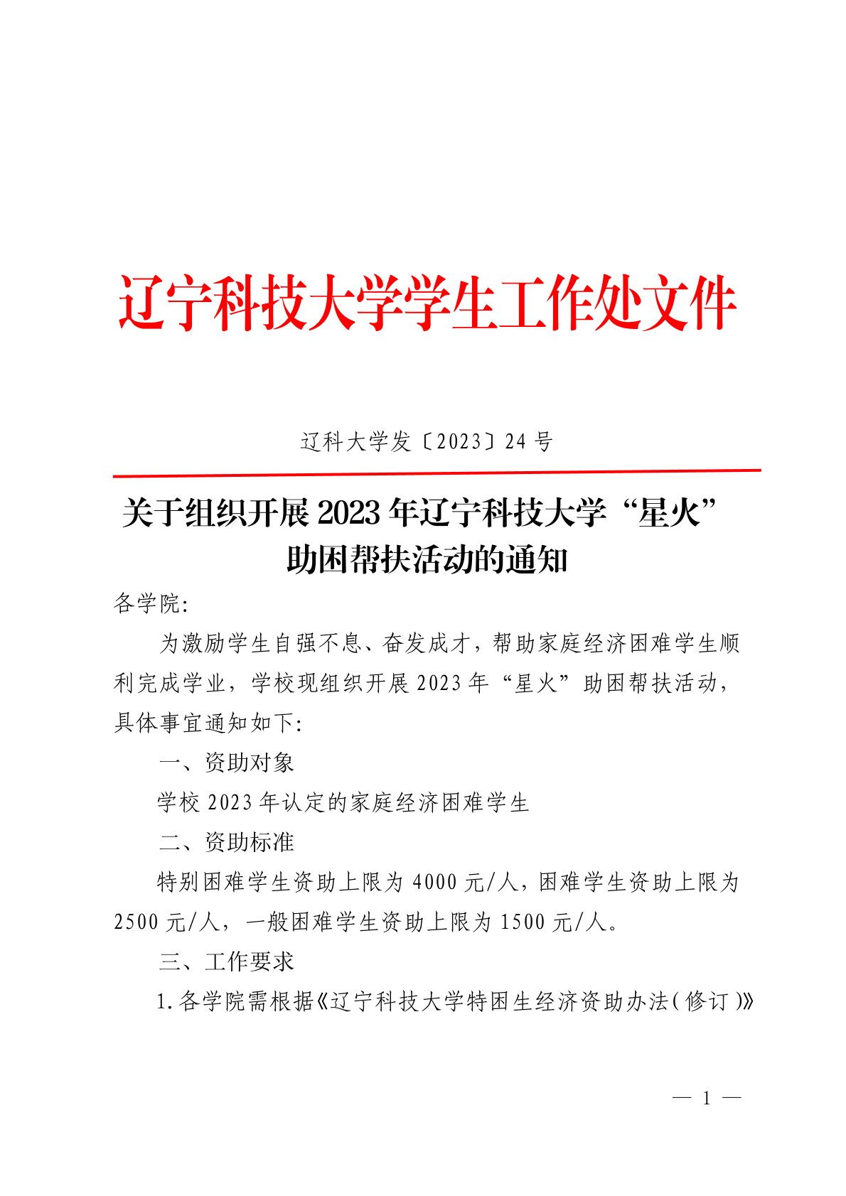 关于组织开展2023年九州体育·(中国)官方网站“星火”助困帮扶活动的通知
