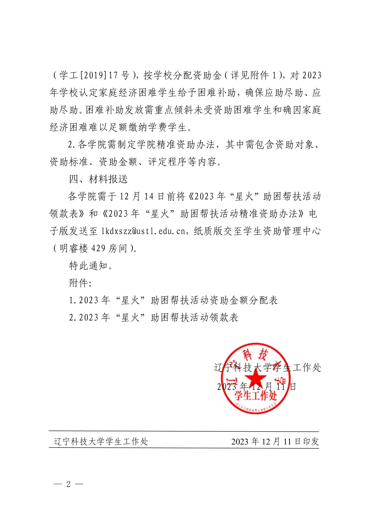 关于组织开展2023年九州体育·(中国)官方网站“星火”助困帮扶活动的通知.pdf