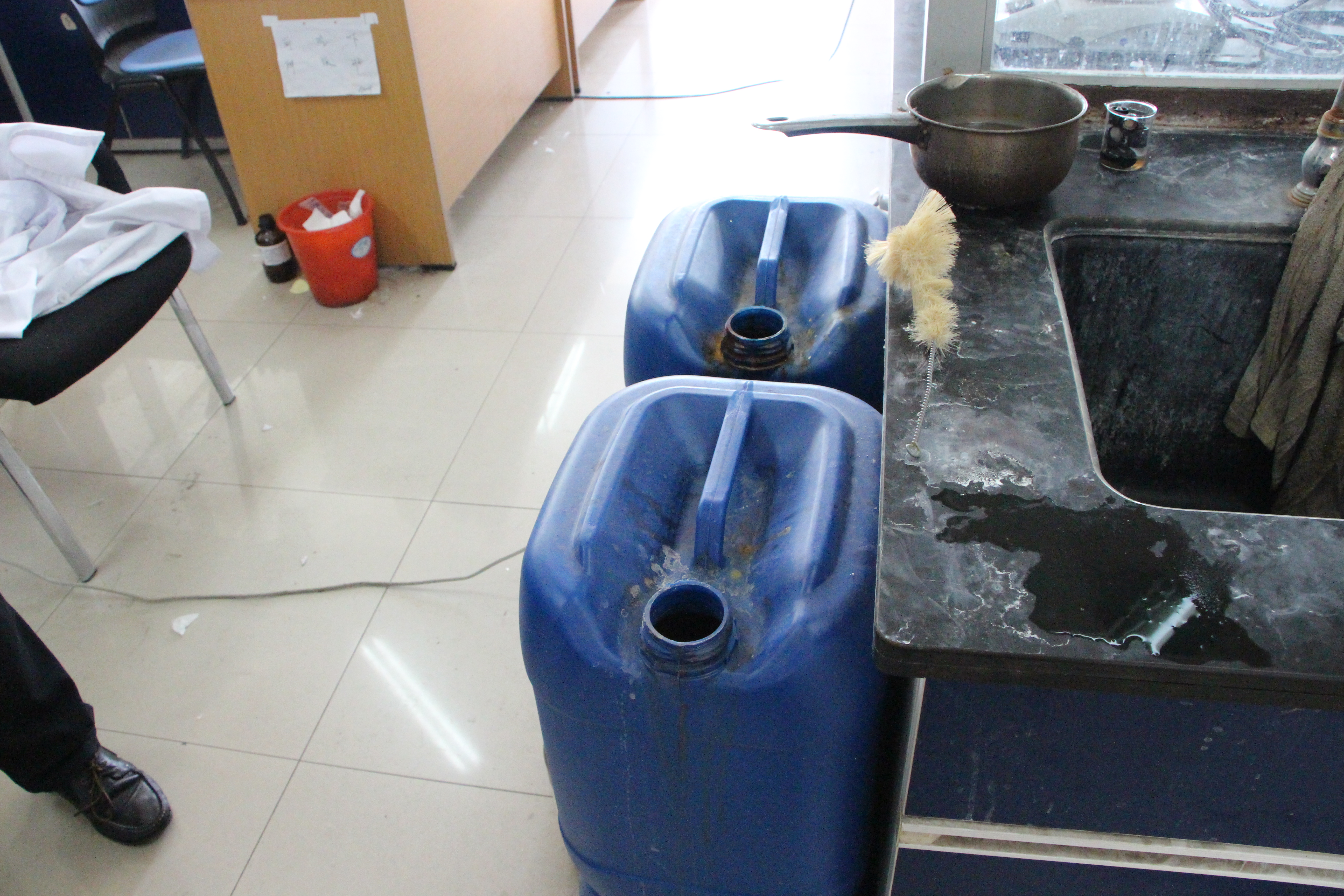 在检查中发现:有的实验室及科研场所使用插排还存在乱接现象,电源连接不规范;气瓶没有标签,还存在没有固定装置情况;实验药剂、废液容器还存在没贴标签,随地乱放现象;有的实验室、科研场所脏乱差没有很好整治等。检查组当即要求立即整改,如一时解决不了,由检查小组办公室及实验中心督促整改到位,检查小组将随时二次检查。
