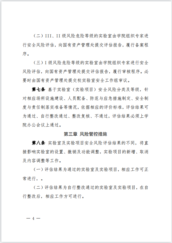 关于印发《化学工程学院实验室(实验项目)风险评估及分级管控办法(试行)》等4个文件的通知