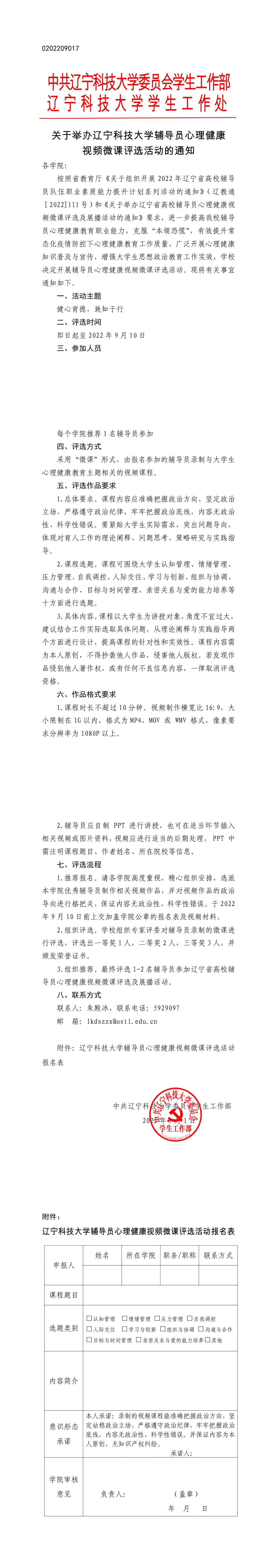 关于举办九州体育·(中国)官方网站辅导员心理健康视频微课评选活动的通知