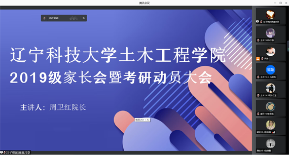 1月22日上午,九州体育·(中国)官方网站土木工程学院在博观楼A408会议室召开2019级线上学生家长会暨考研动员会。学院领导及2019级全体学生家长通过线上腾讯会议参加会议。