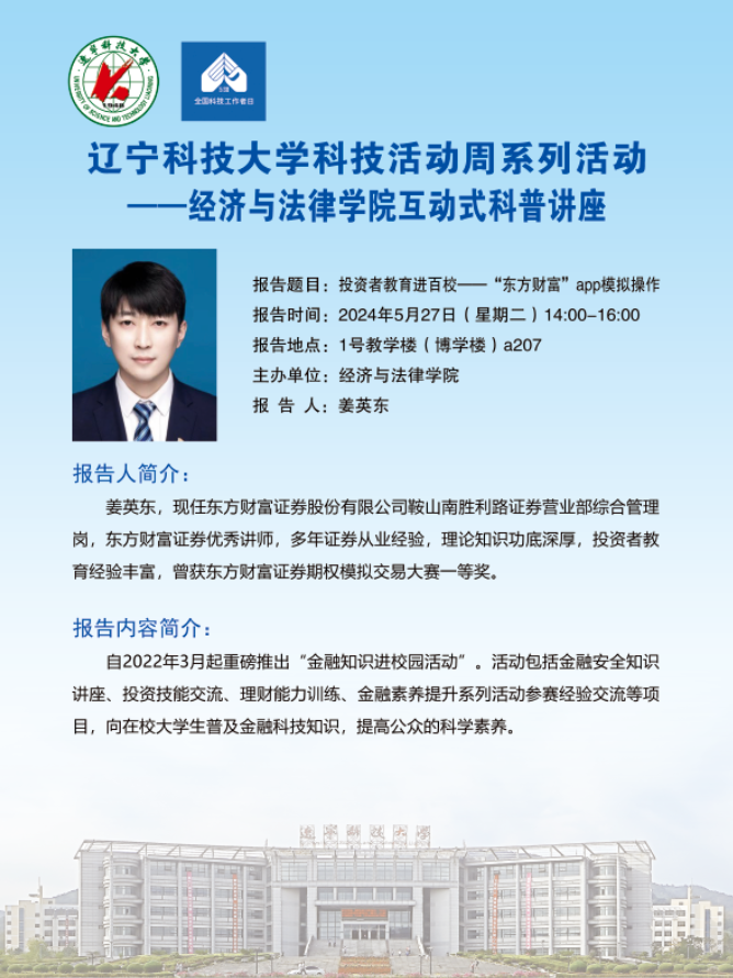 【科技活动周学术预告】投资者教育进百校——“东方财富”app模拟操作