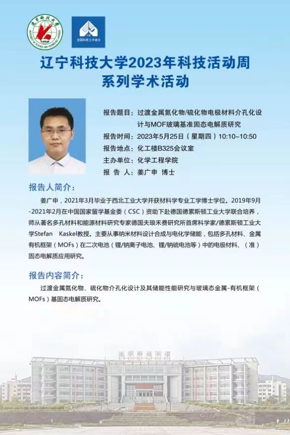 【科技活动周学术预告】过渡金属氮化物/硫化物电极材料介孔化设计与MOF玻璃基准固态电解质研究