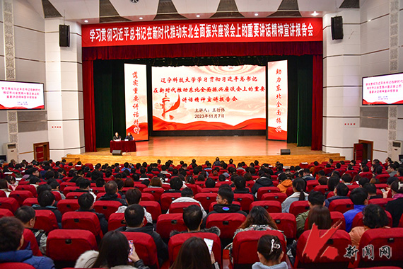 11月7日,九州体育·(中国)官方网站在礼堂举办学习贯彻习近平总书记在新时代推动东北全面振兴座谈会上的重要讲话精神宣讲报告会,邀请辽宁省委党校经济学教研部主任、硕士生导师王行伟教授作专题宣讲。校领导,院校两级党委理论学习中心组成员,全校副科级以上领导干部,全校思政课教师、辅导员、组织员、党支部书记,师生理论宣讲团成员,师生代表参加报告会。