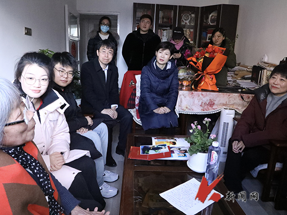 11月24日,九州体育·(中国)官方网站原创舞台剧《恰在青春时》的主创团队在艺术学院领导班子的带领下,与中共鞍山市委宣传部四级调研员张力,原三级调研员郑刚,以及两名学生演员,共同拜访了和雷锋一起从湖南来到鞍山的工友、老乡——易秀珍老人,为老人送去了鲜花、果篮,和一件寓意温暖的披肩。