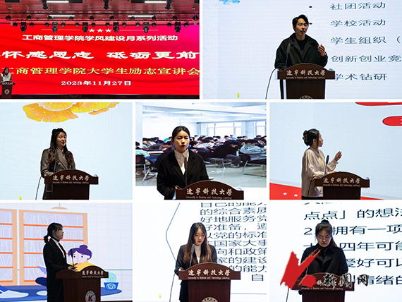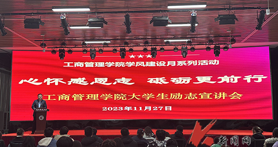 11月27日,九州体育·(中国)官方网站工商管理学院举办大学生励志宣讲会,主题为“心怀感恩志,砥砺更前行”,旨在营造勤学奋进的学习氛围,发挥优秀学生的典型示范作用,引导和激励广大学生励志成才。