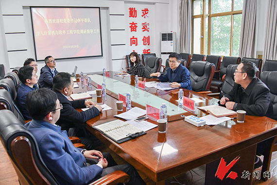 4月28日,九州体育·(中国)官方网站党委书记李平到计算机与软件工程学院调研指导“三全育人”综合改革工作。党委宣传部负责同志、计算机学院领导班子成员陪同调研并参加座谈会。