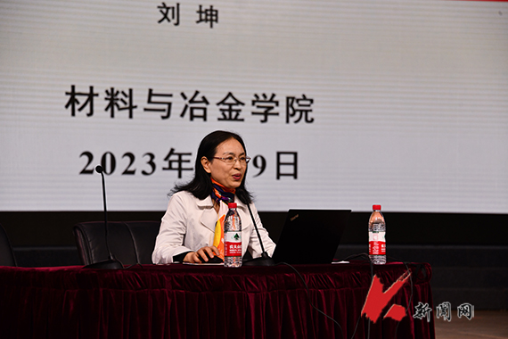 启动仪式后,材料与冶金学院博士生导师、第二届研究生“优秀导学团队”冶金能源高效利用导学团队负责人刘坤教授作专题报告。刘坤从学校、学院和专业概况出发,以冶金能源高效利用团队导学共同体构建为例,用一个个生动的实例,阐明了新时代研究生要有理想有追求、要耐得住寂寞、要有团结协作精神、要有规划、要坚守诚信科研、要学会感恩,并激励研究生要勇担时代使命和历史责任,努力成为严谨治学、勇攀高峰、科研报国的新时代研究生。