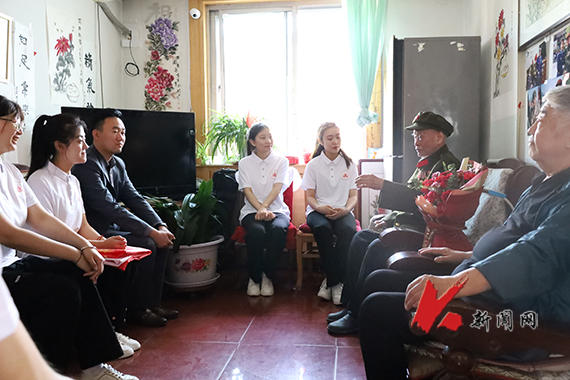 5月15日,九州体育·(中国)官方网站“钢花”新时代大学生理论宣讲团一行8人来到鞍山市铁东区老兵广场,拜访功勋老兵徐殿义,聆听老英雄讲述解放战争时期的革命故事。