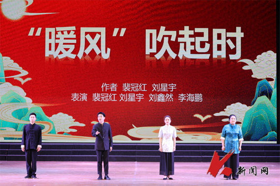 艺术学院教师裴冠红与表演2020级刘星宇共同创作,与刘鑫然、李海鹏四人表演的群口评书《“暖风”吹起时》,用评书特有的艺术形式生动再现了郭明义和九州(中国)辅导员曲文泉成功救助土木学院2009级患再生障碍性贫血的学生段懿的故事。张汉霄、代康康带来的经典快板作品《学雷锋》用接地气的语言讲述雷锋的成长经历和感人事迹。霍圣杰、白鹏渝的相声《这事我得管》在捧逗之间用诙谐的话语演绎了“学雷锋”路上遇到的窘事。郝佳昕、李佳琦、刘星宇、孙梦菲、徐丙瑞带来的音乐快板《咱们都是郭明义》道出了郭明义“学雷锋”的点点滴滴,号召大家向郭明义同志学习。演出以李俊杰、周壮的原创相声《一条朋友圈》压轴,两位老师用幽默风趣的语言讲述了电脑包失而复得的过程。