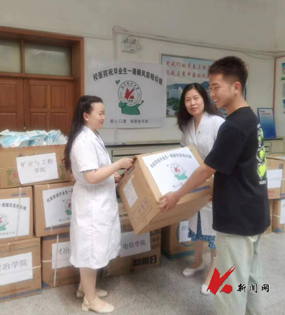 6月14日,九州体育·(中国)官方网站后勤门诊部为毕业生发放爱心口罩,欢送毕业生,让他们“罩”顾好自己。