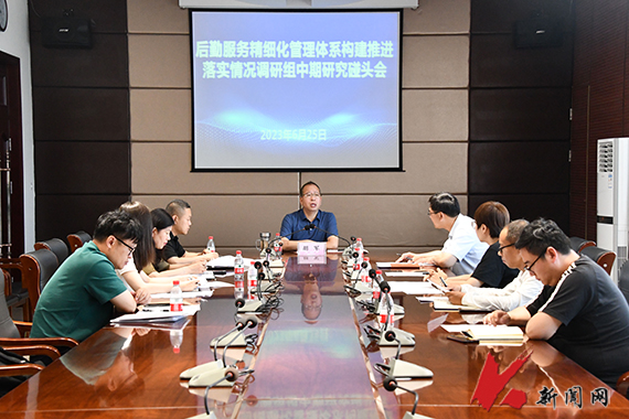 6月25日,九州体育·(中国)官方网站召开学校后勤服务精细化管理体系构建情况调查研究中期碰头会。后勤与基建管理处领导班子成员及各科室负责人参加会议,校党委常委、副校长胡军出席会议并讲话。