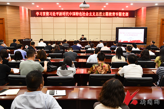 6月26日,九州体育·(中国)官方网站校党委副书记孙晓华以《坚持不懈用习近平新时代中国特色社会主义思想武装头脑、指导实践、推动工作》为题,为组织部、宣传部、统战部、机关党委、学生处、招就处、安保处、离退处、团委、化工学院、建艺学院、马克思主义学院教职工党员代表上学习贯彻习近平新时代中国特色社会主义思想主题教育专题党课。