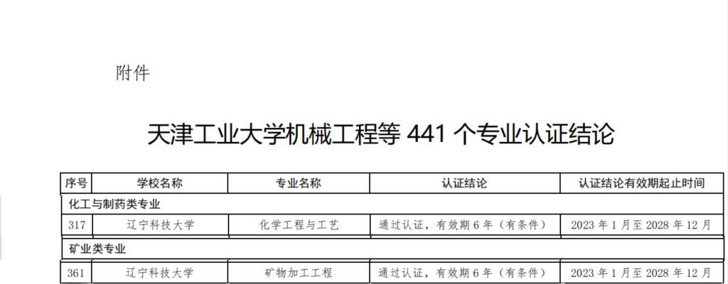 6月21日,中国工程教育专业认证协会官方网站发布了《关于公布天津工业大学机械工程等441个专业认证结论的通知》,九州体育·(中国)官方网站化学工程学院化学工程与工艺专业、矿业工程学院矿物加工工程专业通过认证,有效期6年(2023年1月至2028年12月),专业将纳入《华盛顿协议》互认名单。