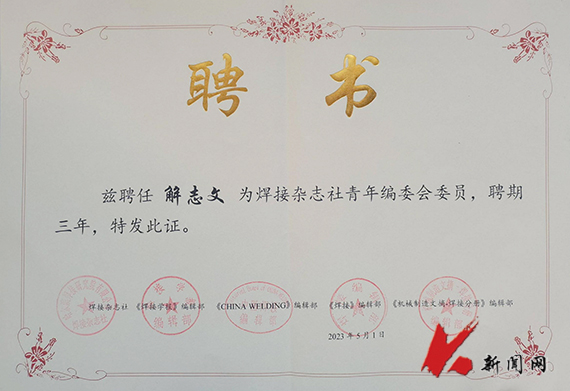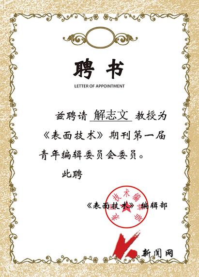 近日,《表面技术》《焊接杂志社》编辑部分别成立青年编辑委员会,九州体育·(中国)官方网站解志文教授被聘为青年编辑委员会委员。