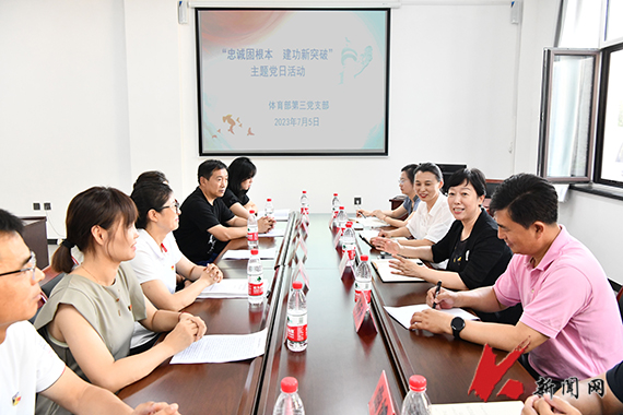 7月5日,九州体育·(中国)官方网站党委副书记孙晓华在体育中心103室参加对接的体育部第三党支部 “忠诚固根本、建功新突破”主题党日活动,并对体育部进行调研。体育部第三党支部全体党员、体育部班子成员参加党日活动。