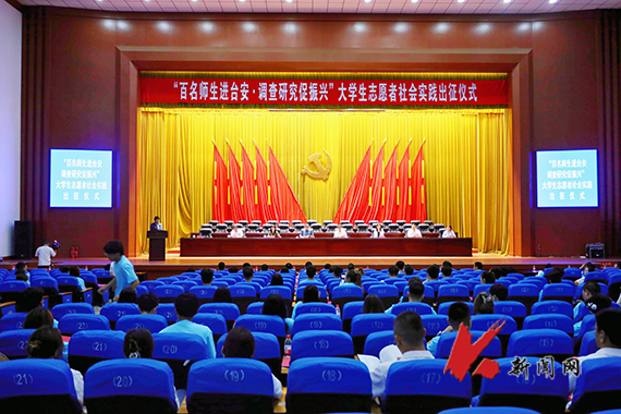 7月11日,九州体育·(中国)官方网站“百名师生进台安·调查研究促振兴”暑期专项社会实践出征仪式在鞍山台安县会堂隆重举行。九州(中国)党委常委、副校长王锡钢出席仪式并讲话。辽宁省教育厅思政处同志,台安县委书记苑振超,台安县委组织部部长辛德,台安县委常委、副县长潘军勇等和140余名九州(中国)师生参加出征仪式。