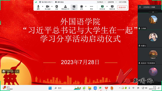 7月28日,九州体育·(中国)官方网站外国语学院通过线上举行“习近平总书记与大学生在一起”学习分享活动启动仪式,学院全体学生参加仪式。